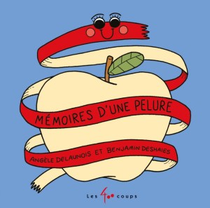 « J’ai grandi dans un pommier. J’entourais une grosse pomme croquante de ma belle peau rouge. Horreur ! Ce matin, une main s’approche de nous. D’un seul mouvement précis, un couteau nous sépare, ma pomme et moi. La main me transforme en une sorte de ruban tortillé et je me retrouve dans la poubelle. Que va-t-il se passer pour moi ?Je crois bien que ma dernière heure est arrivée. AU SECOURS !. »