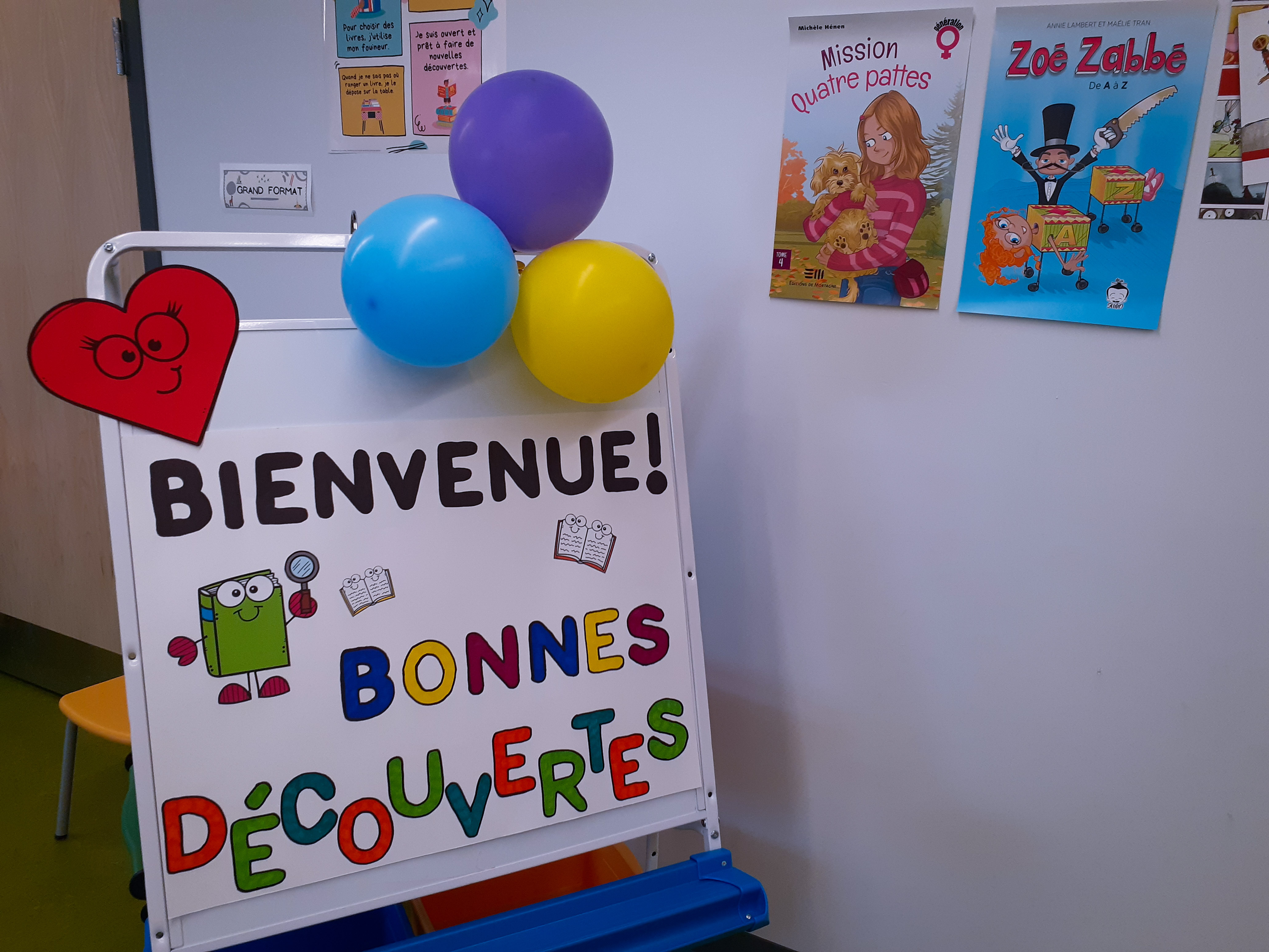 De plus, afin de souligner l’ouverture officielle de la nouvelle bibliothèque de l’école, nous avons organisé une MÉGA GROSSE exposition de plusieurs livres, des coups de cœur littéraires et de belles nouveautés, toutes adressées aux enfants de 5 à 10 ans.